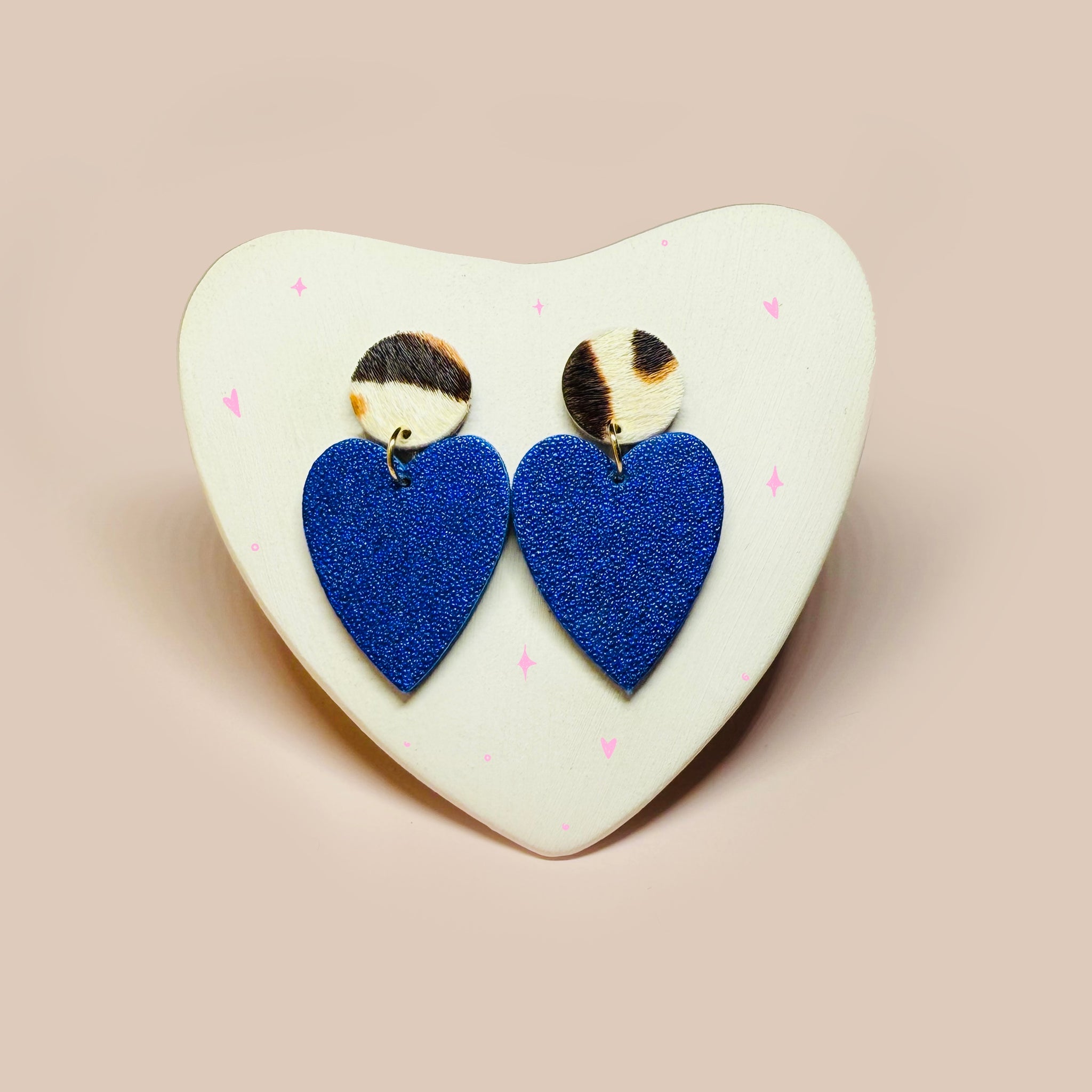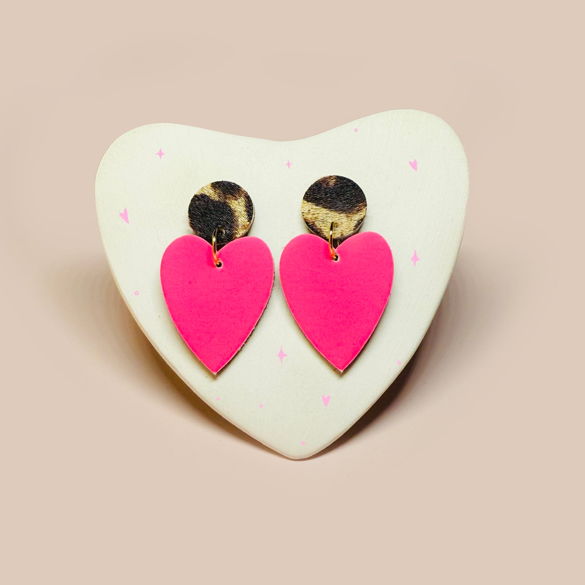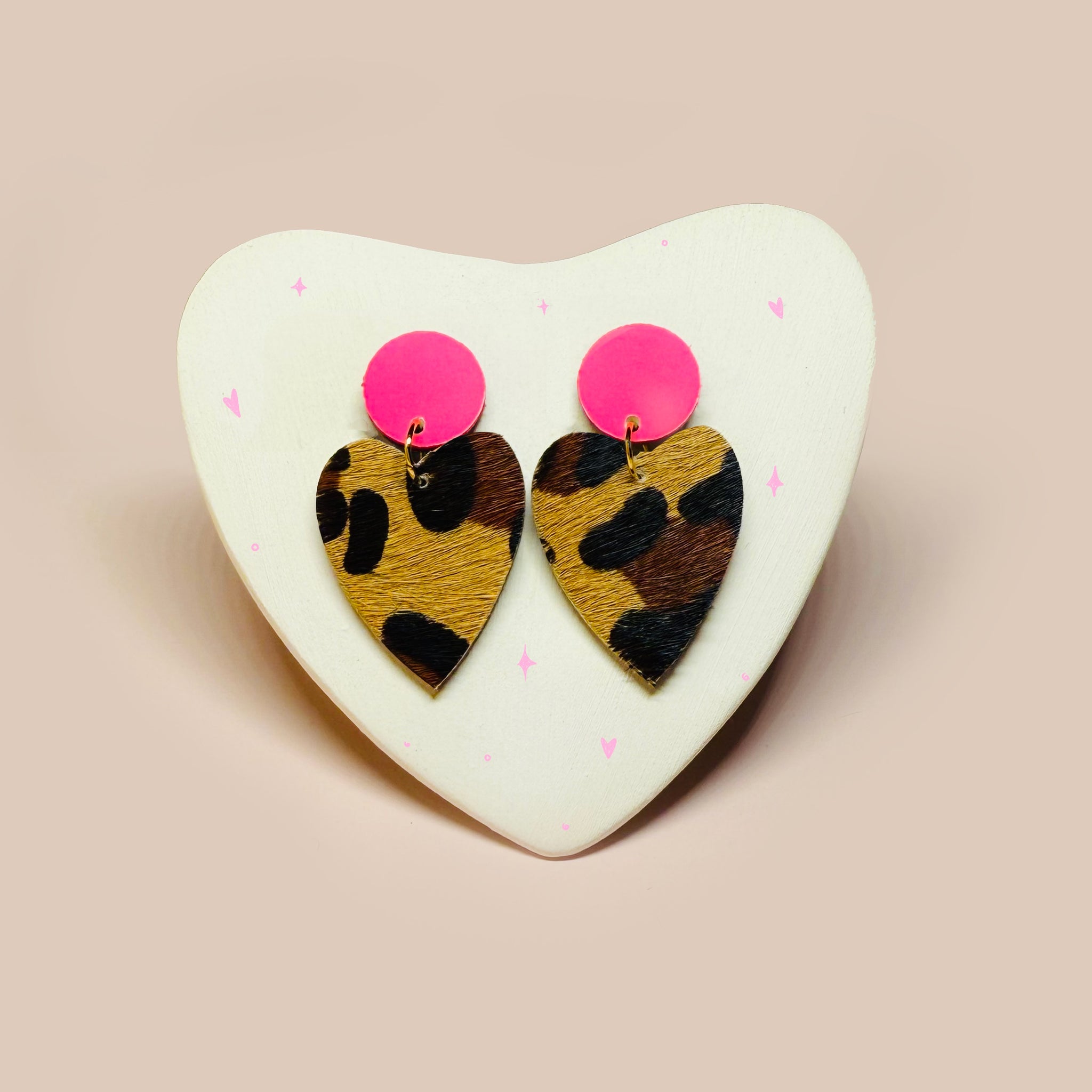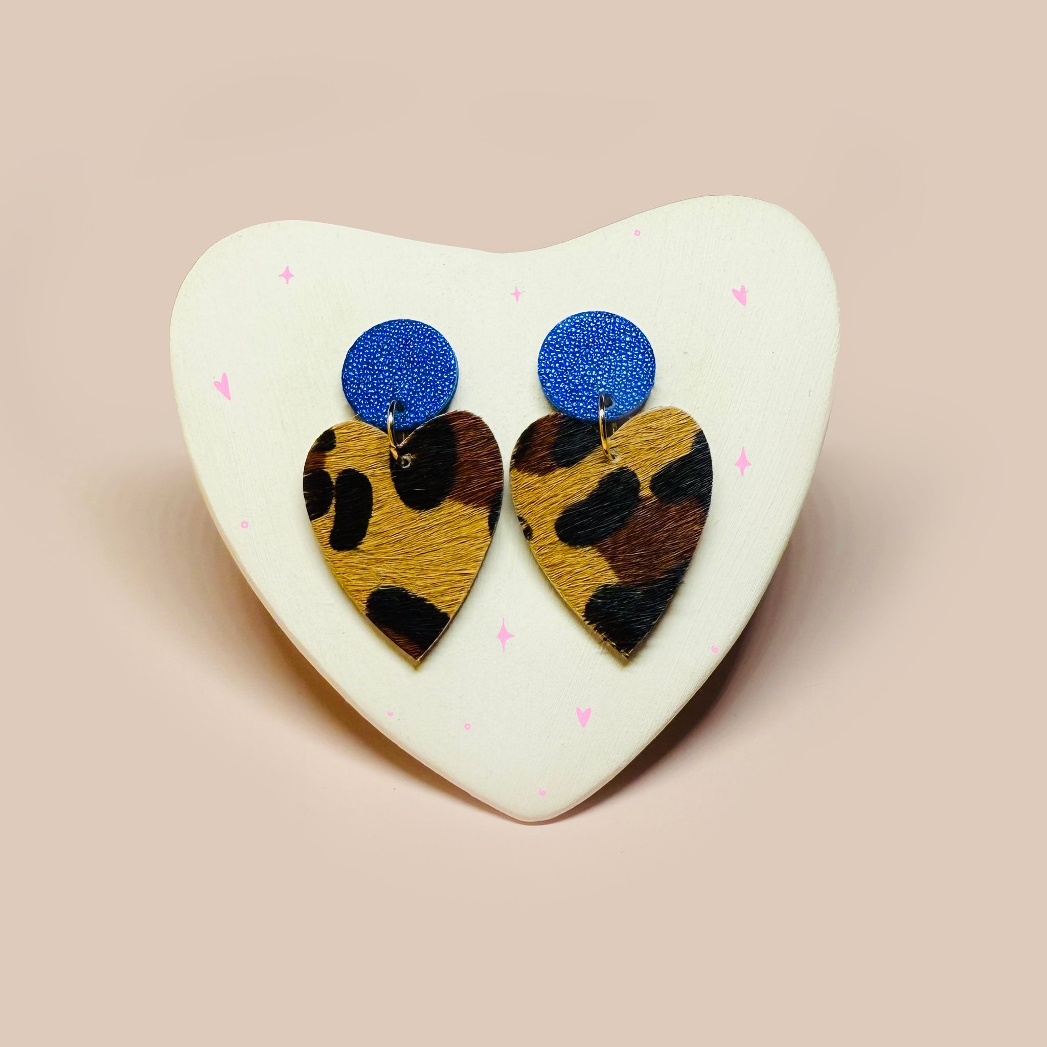 Boucles d’oreilles cœur en cuir recyclé, touche léopard funky en vert, bleu, rose et vert éco-chic et unique ! 💚✨